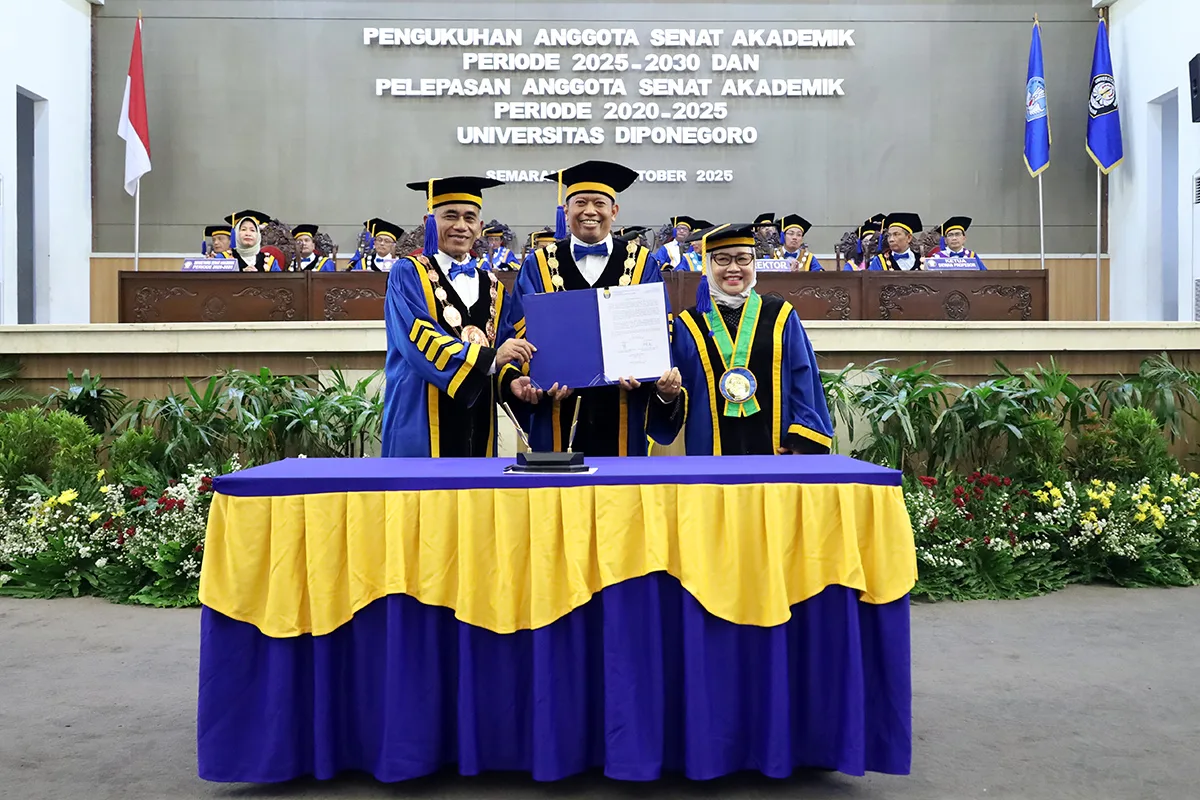 UNDIP, Semarang (20/10) – Universitas Diponegoro menandai babak baru perjalanan akademiknya melalui Pengukuhan Anggota Senat Akademik Periode 2025–2030 dan Pelepasan Anggota Senat Akademik Periode 2020–2025,